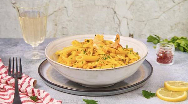 Penne Rigate Katkarapu-, Sahrami- Ja Sitruunakastikkeessa
