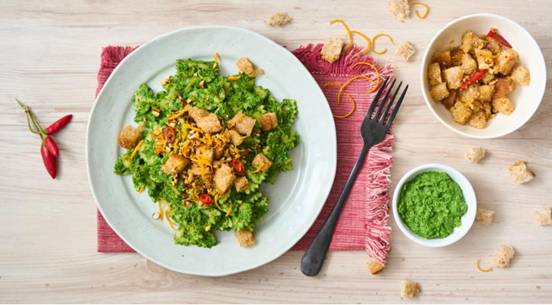 Farfalle Kaalipesto Krutongeilla